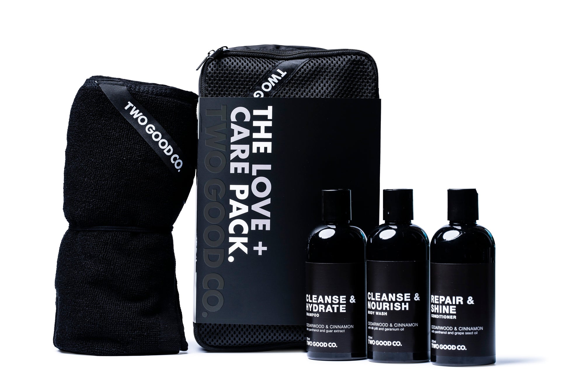 Inspired by a letter written to us by Lisa, a domestic violence survivor, Two Good's Love + Care Pack elevates daily essentials with luxurious products designed to spark a sense of self worth. Natural ingredients gently cleanse and refresh, whilst our signature Cedar wood & Cinnamon scent creates a calming, aroma therapeutic experience to relieve stress and anxiety.